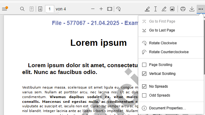 Configurable UI functions: Enable or disable sensitive features like Print, Save, Text-Selection etc. by your needs/permissions.